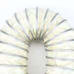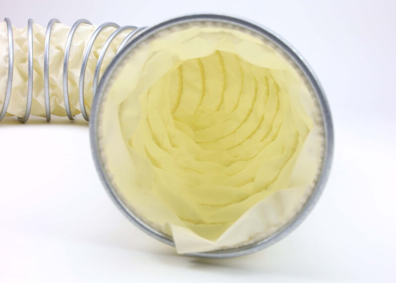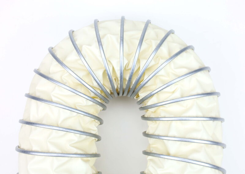 Very flexible suction hose made of fiberglass fabric coated with silicone on both sides, reinforced with a galvanized steel external spiral, with very good chemical and thermal resistance, used in extraction and ventilation systems to remove cold and hot air, steam, exhaust gases and chemical fumes.