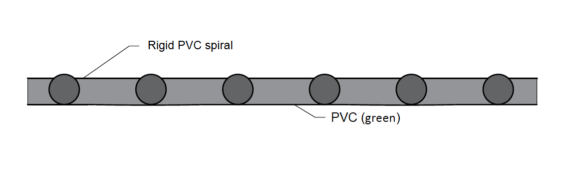 Thick-walled pressure hose made of softened polyvinyl chloride reinforced with a hard PVC spiral with very good resistance to hydrolysis and chemicals, resistant to pressure and vacuum, smooth inner wall, used for pneumatic and gravity transport of solid media, liquids and gases, especially in sanitary installations, agricultural machinery or as a pool hose.